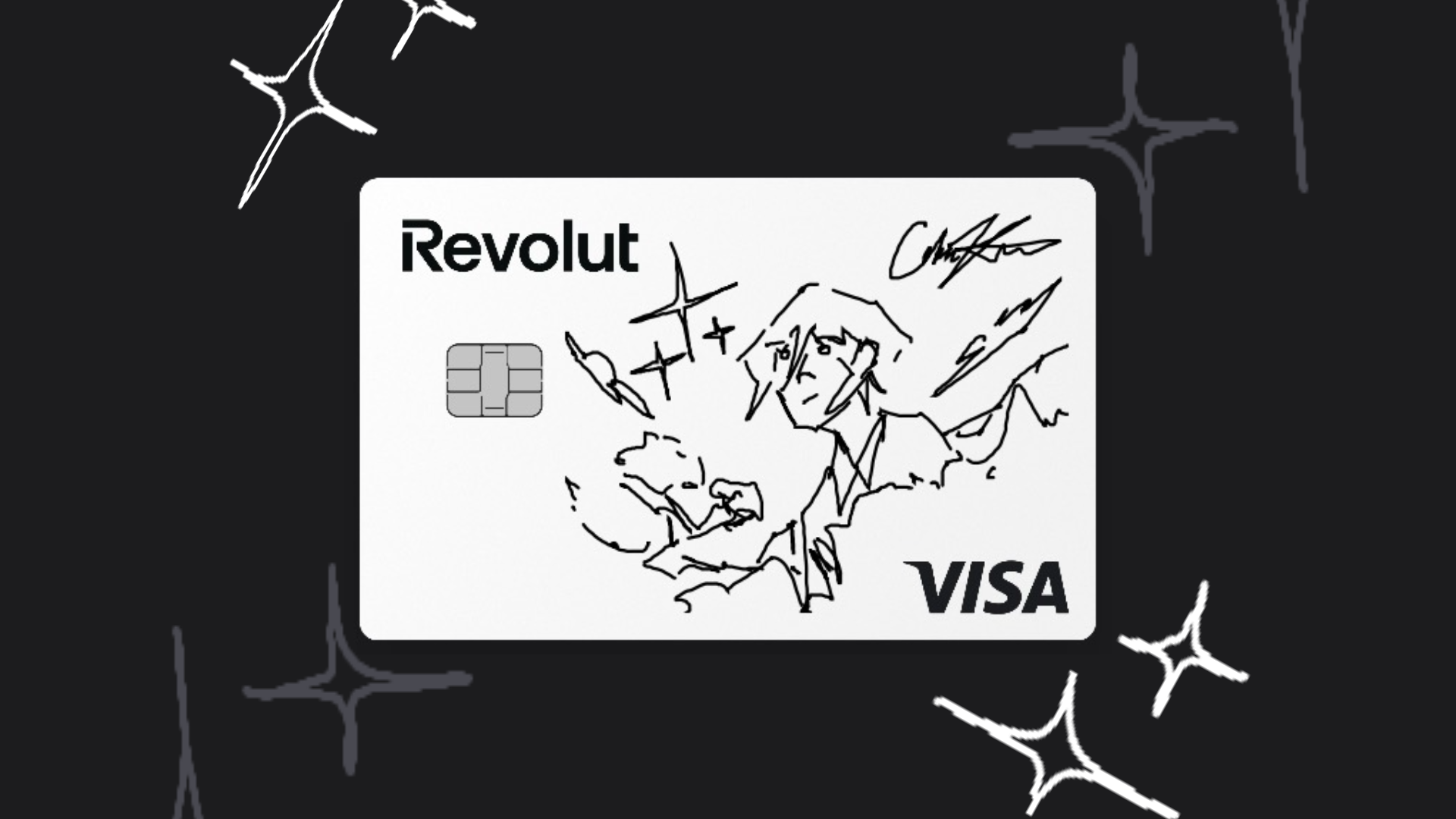 Using my finger and the drawing tool in Revolut's in-app card customization feature, I designed a card with a roughly sketched-out design while using the limitations of the image boundary to create the perfect framing.